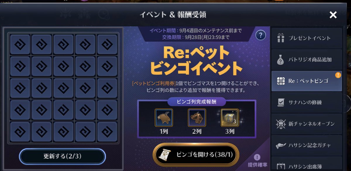 Jステイサム 黒い砂漠モバイル ペットビンゴ 5世代箱3つとか2つがあるの今日気づいた 説明ちゃんと読まなきゃw