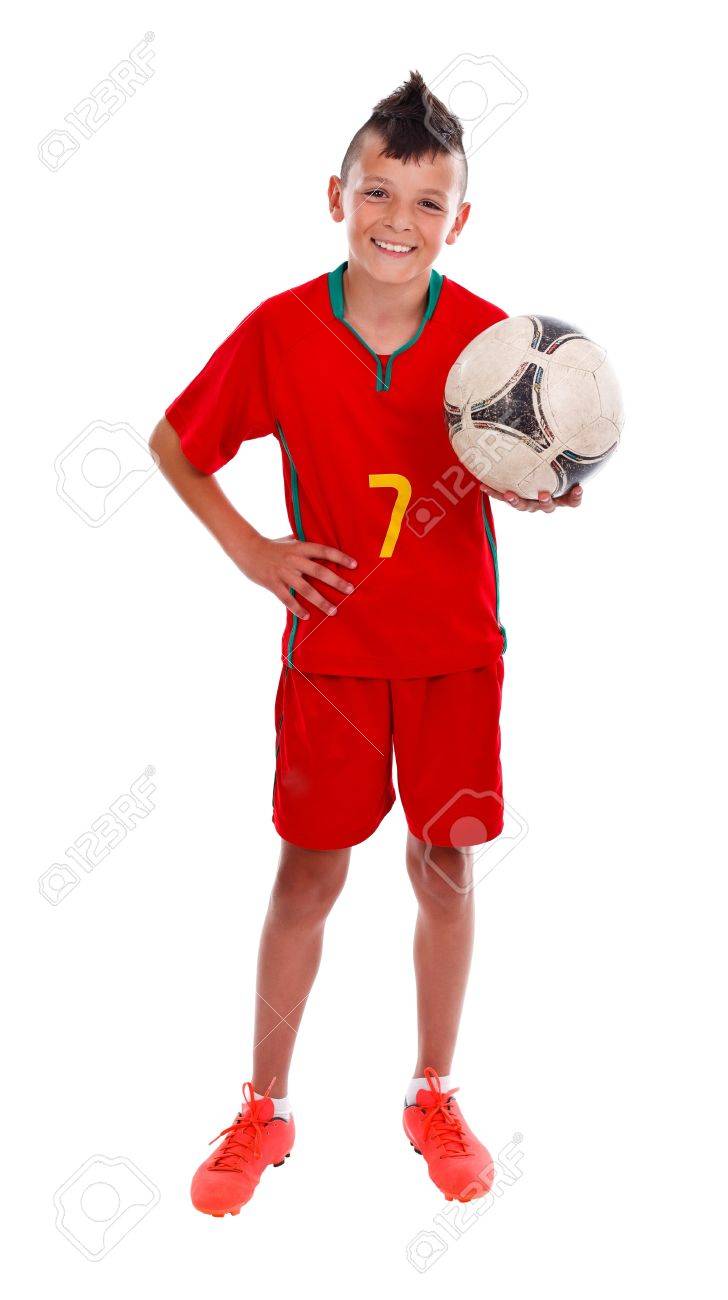 少年サッカー ボール スタジオ撮影を保持 の写真素材 画像素材 Image